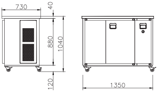 Maße: B/T/H 1.350/730/1.050 mm